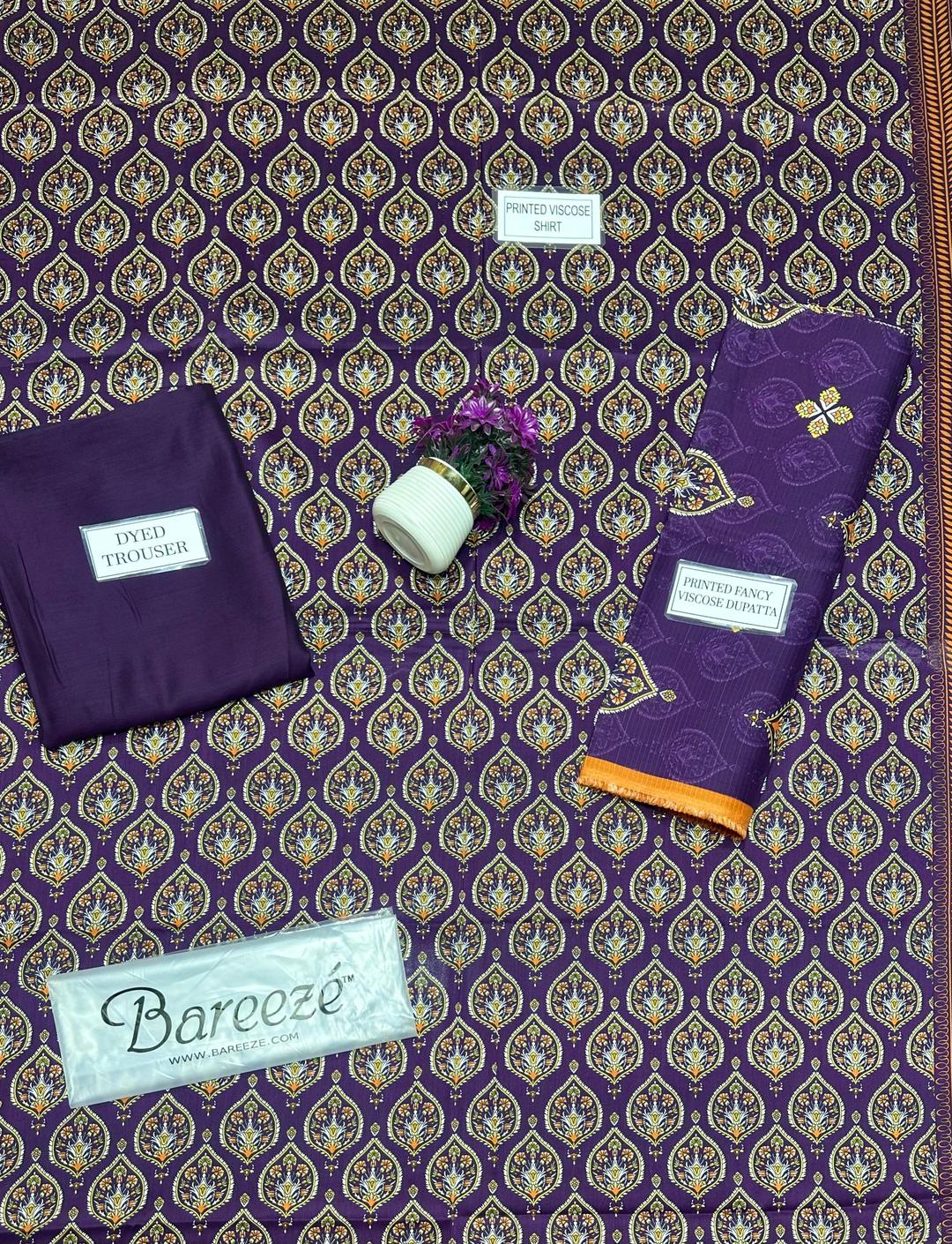 3 Pcs Women's Unstitched Viscose Printed Suit